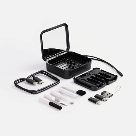 - аксессуары для чистки гаджетов: щетка с наклонной щетиной, перо для чистки со щеткой для наушников, насадка для чистки футляра от наушников, двусторонняя насадка для чистки разъемов зарядки, щетка с мягкой щетиной - Беспроводная зарядка работает при питании от сети, адаптер питания приобретается отдельно.