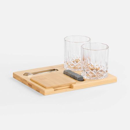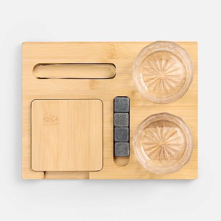 стаканы - стекло; поднос, костеры - бамбук; щипцы - нержавеющая сталь, 304; камень; коробка - картон