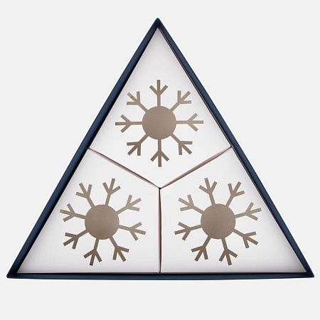 А еще Finery Trio — это маленькое произведение искусства, созданное с вниманием к деталям: шары диаметром 10 см бережно уложены в индивидуальные ложементы с изящным вырезом в форме снежинки, а стильная коробка придает подарку особую торжественность. Нестандартная треугольная форма упаковки подчеркивает оригинальность композиции и делает презент по‑настоящему запоминающимся.