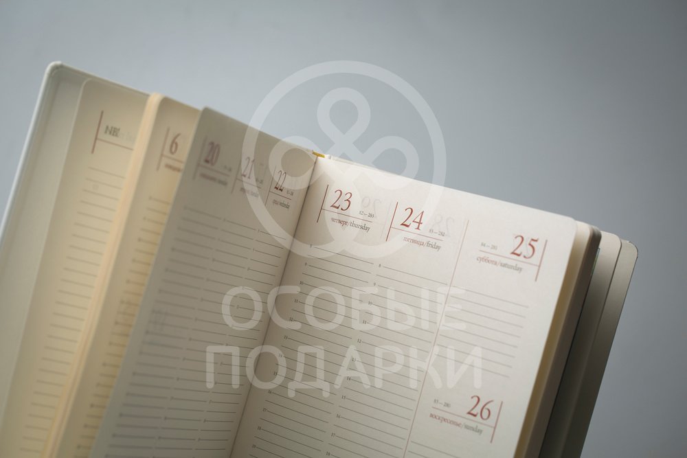Заказ для "Особых Подарков" на синие ежедневники и черные термосы с удобной крышкой-кружкой; далее - лаконичные ежедневники коричневого цвета.