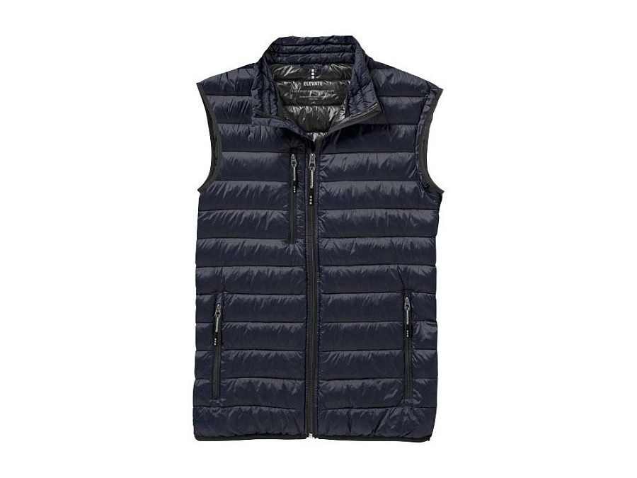 Пуховая жилетка Fairview. Стандартный покрой. Ткань не пропускает пух. Карманы для рук и нагрудный на молнии. Внутренний противоветровой клапан и защита подбородка. Эластичная обшивка внизу и на проймах. Ткань дышащая, ветронепроницаемая и влагоотталкивающая. Отражающий лого сзади. Ремешки на собачку (второй комплект в цвете антрацит). Жилет - версия победителя премии Reddot, куртки Scotia. Ткань из 100% нейлона с матовым и блестящим водоотталкивающим покрытием, 20D. 80% пух и 20% перо.