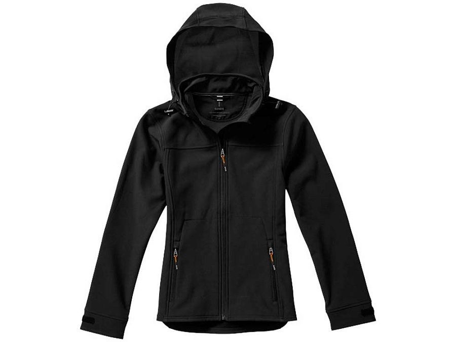 Женская куртка софтшел Langley. Стандартный покрой. Отстегивающийся капюшон на шнурках со стопперами. Обратная молния по центру и на карманах для рук. Регулируемые манжеты на липучках. Отражающий лого сзади. Водонепроницаемый 5000 мм. Дышащий 3000 мм. Ткань эластична в четырех направлениях. Ветронепроницаемая. Ремешки на собачку (второй комплект в цвете антрацит). Ткань из 90% полиэстера и 10% эластана, склеенного со 100% полиэстеровым микрофлисом. 300 г/м².