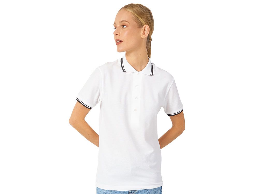 Рубашка-поло Erie с окантовкой. Воротник и манжеты резинка 1х1. Мужская модель с двумя пуговицами, женская - 4 пуговицы в тон изделия. Обшивка внутри воротника. Женская модель с разрезами по бокам. Женская модель приталена. Пике, 100% чесаный хлопок. Плотность 180 г/м2.