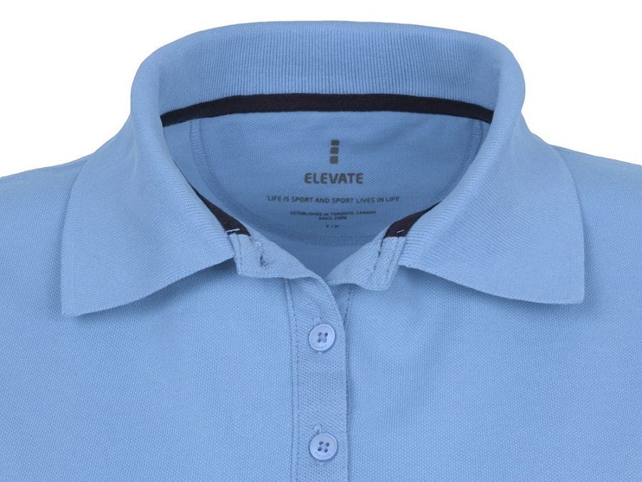 Женская рубашка поло с короткими рукавами Calgary. Стандартный покрой. Опущенный плечевой шов, цепная строчка. Мужская и детская модели на двух пуговицах. Женская модель с планкой на три пуговицы. Боковые разрезы с атласной лентой внутри. Детали со швами Pick-Stitch. Принт лого сзади в тон изделия. Атласная лента внутри горловины. Полумесяц. Резинка 1х1 на воротнике и манжетах. Трикотажное пике, 100% хлопок. 200 г/м².