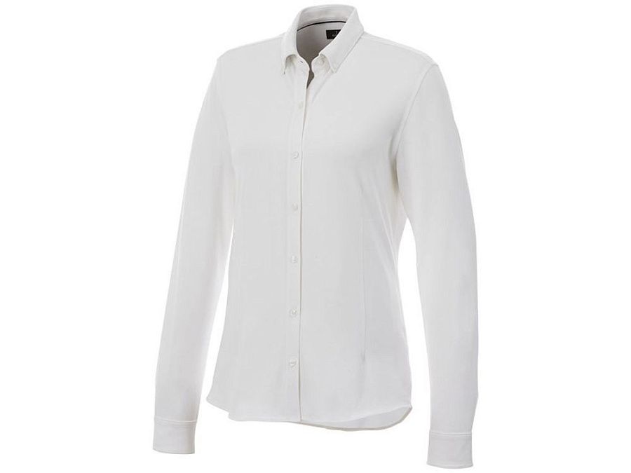 Женская рубашка Bigelow из пике с длинным рукавом. Воротник из ткани изделия. Стрейтч-ткань. Регулируемый манжет на одной пуговице. Воротник на пуговицах. Швы моделирующие фигуру и приталенный крой. Атласная окантовка внутренней части горловины. Гравированные пуговицы в цвет изделия. Тканая метка. Двойное трикотажное пике, 95% хлопок и 5% эластан. 200 г/м².