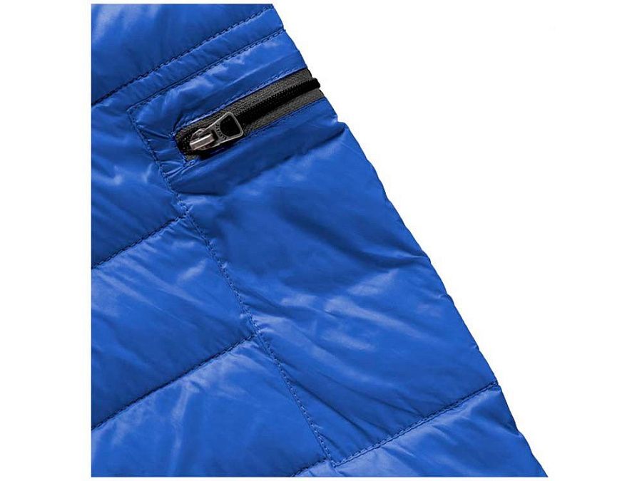 Легкая куртка Scotia. Стандартный покрой. Ткань не пропускает пух. Карманы для рук и нагрудный на молнии. Карман на рукаве на молнии можно использовать для нанесения. Резинка на манжетах и внизу куртки. Ремешки на собачку (второй комплект в цвете антрацит). Внутренний противоветровой клапан и защита подбородка. Ткань дышащая, ветронепроницаемая и влагоотталкивающая. Отражающий лого сзади. Легкий пуховик. Ткань из 100% нейлона с матовым и блестящим водоотталкивающим покрытием, 20D. 80% пух и 20% перо. 115 г/м².