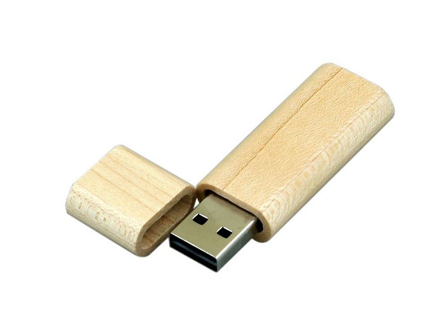 Флеш-накопитель эргономичной прямоугольной формы, с округленными краями, объем памяти 16 Гб. Деревянный корпус.