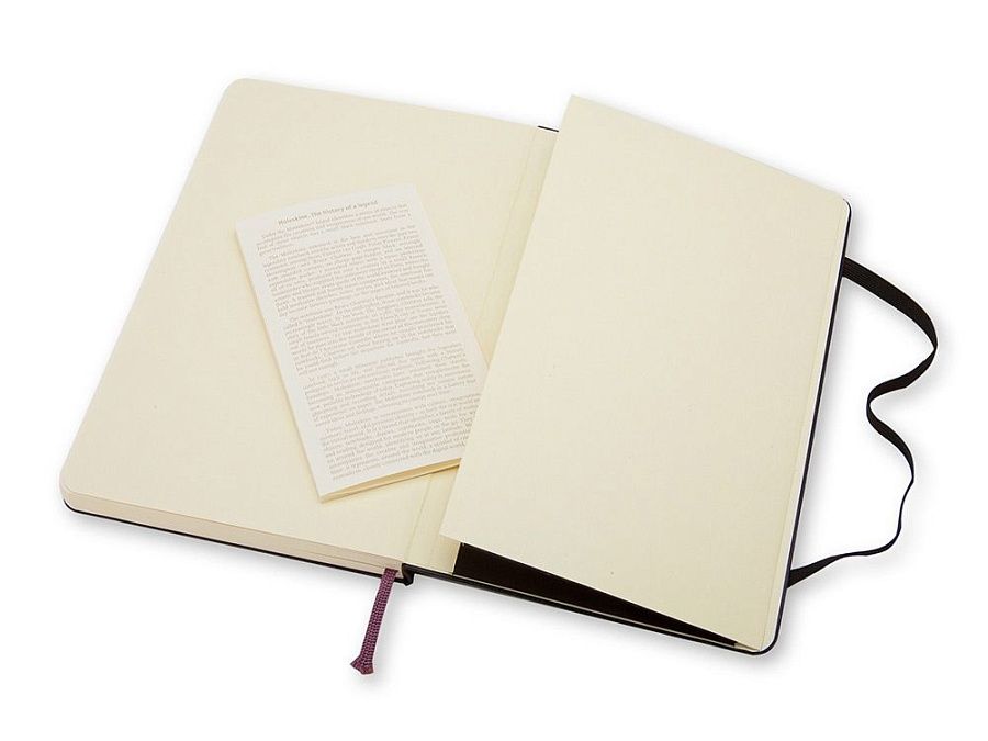 Эта простая, но уже ставшая классикой записная книжка является одним из самых популярных изделий Moleskine. Этот надежный спутник, идеально подходящий для записи мыслей, идей и заметок, выполнен в картонной обложке со скругленными углами, с нелинованными листами из бескислотной бумаги, закладкой, эластичной застежкой и вместительным внутренним карманом.