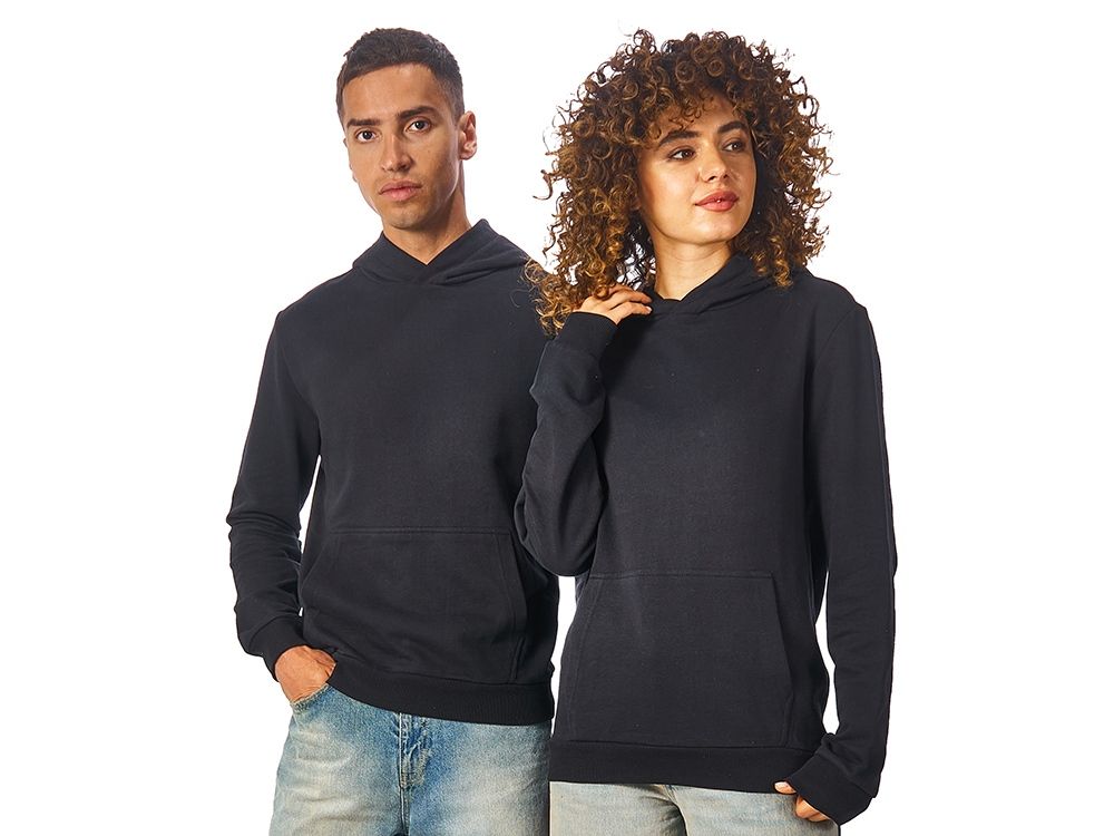 Толстовка с капюшоном (худи) из плотного хлопкового 3х ниточного футера. В капюшоне подкладка в тон, а горловина спинки дополнительно укреплена тесьмой с выделкой «елочка». Капюшон без шнурков – ничего не отвлекает от вашего брендирования. Манжеты и низ изделия отделаны рибом 2х2. Глубокий комфортный карман кенгуру на полочке. Полотно из утяжеленного хлопкового футера внутри с петельками без начеса.