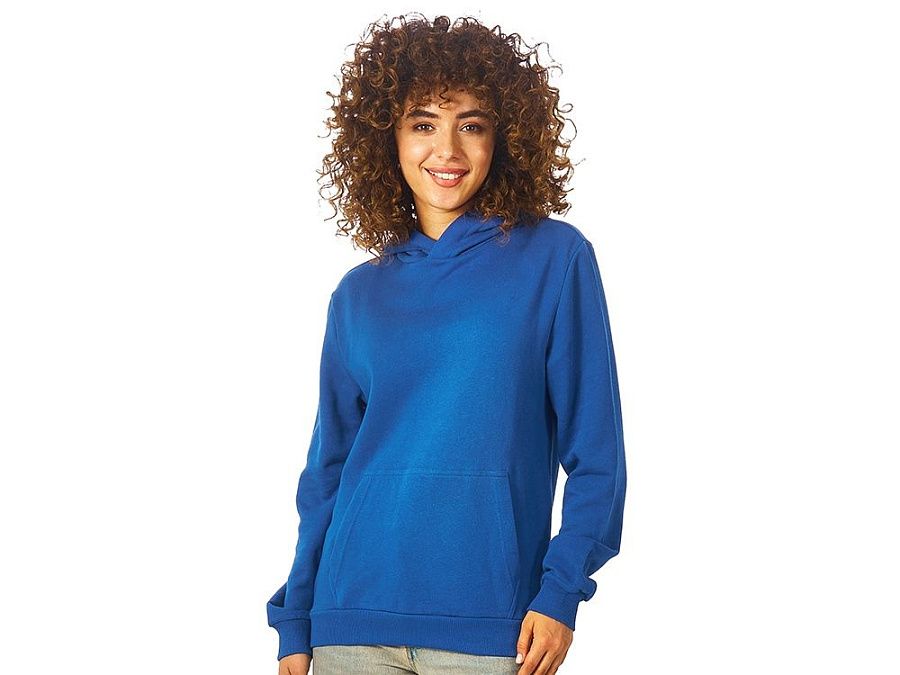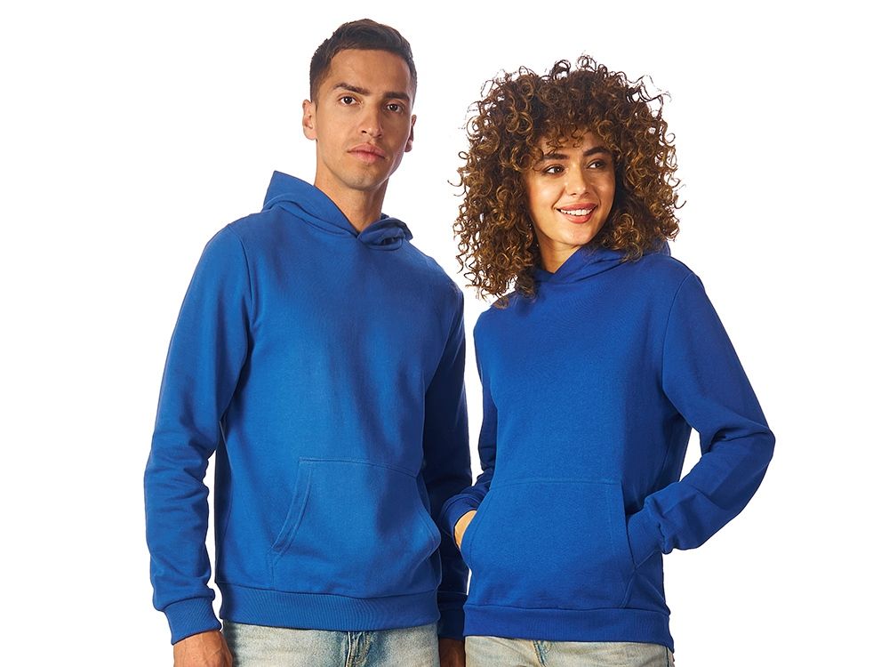 Толстовка с капюшоном (худи) из плотного хлопкового 3х ниточного футера. В капюшоне подкладка в тон, а горловина спинки дополнительно укреплена тесьмой с выделкой «елочка». Капюшон без шнурков – ничего не отвлекает от вашего брендирования. Манжеты и низ изделия отделаны рибом 2х2. Глубокий комфортный карман кенгуру на полочке. Полотно из утяжеленного хлопкового футера внутри с петельками без начеса.