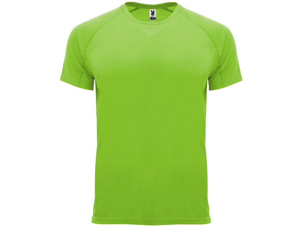 Спортивная футболка с коротким рукавом реглан. Круглый вырез горловины с отделкой плоским швом. Рукав сложного кроя для обеспечения дополнительного удобства при занятиях спортом. Отделка плоским швом с застилом по пройме и рукавам.
