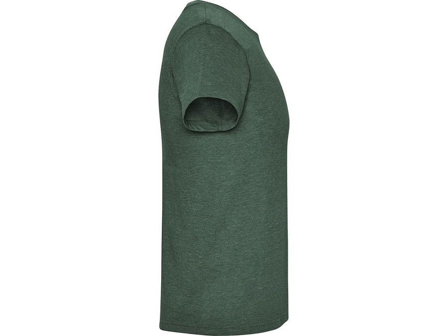 Футболка без боковых швов с коротким рукавом в меланжевом эффекте. Риб горловины 1х1 дополнительно укреплен двойной строчкой.
