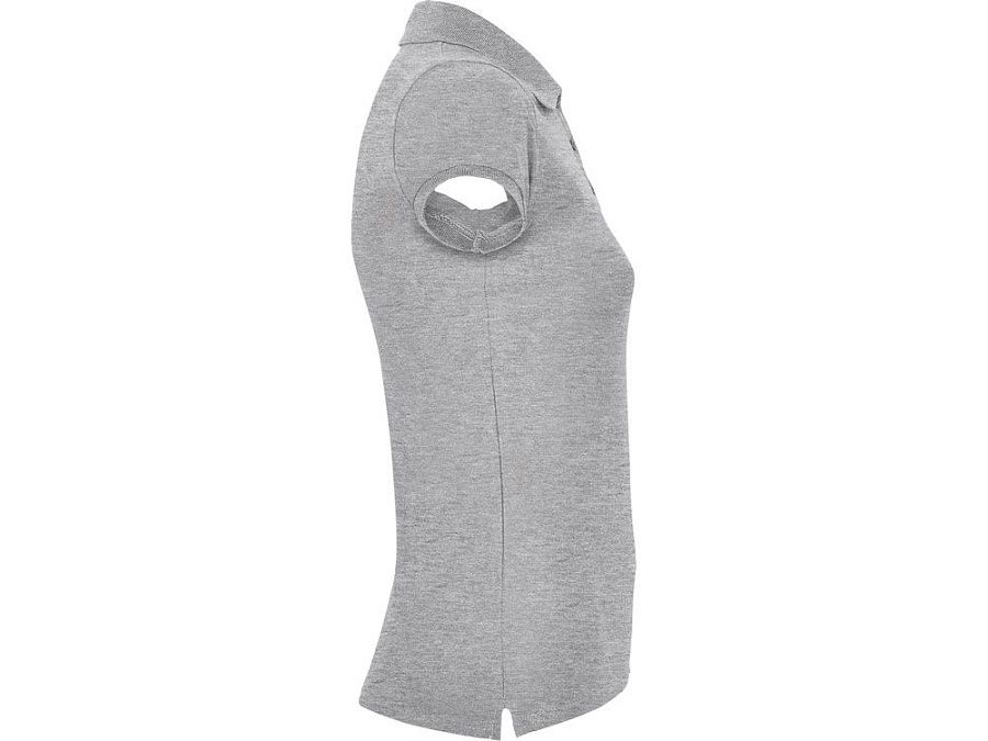 Поло с коротким рукавом для женщин приталенного силуэта. Воротник и манжеты из риба 1х1, отделка горловины внутри тесьмой. Элегантная планка застегивается на 3 пуговицы. Разрезы в боковых швах.
