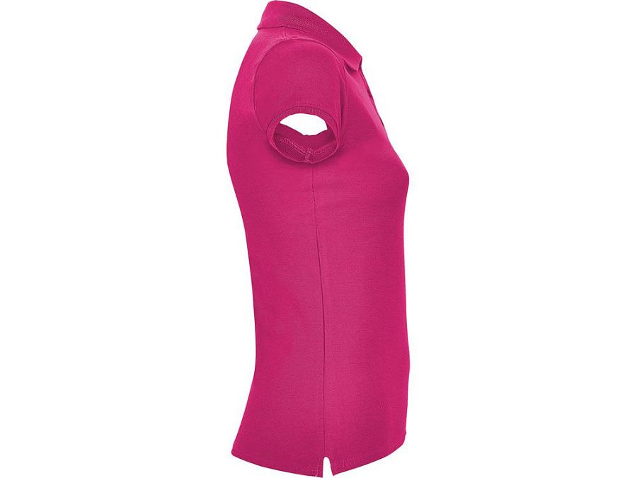 Поло с коротким рукавом для женщин приталенного силуэта. Воротник и манжеты из риба 1х1, отделка горловины внутри тесьмой. Элегантная планка застегивается на 3 пуговицы. Разрезы в боковых швах.