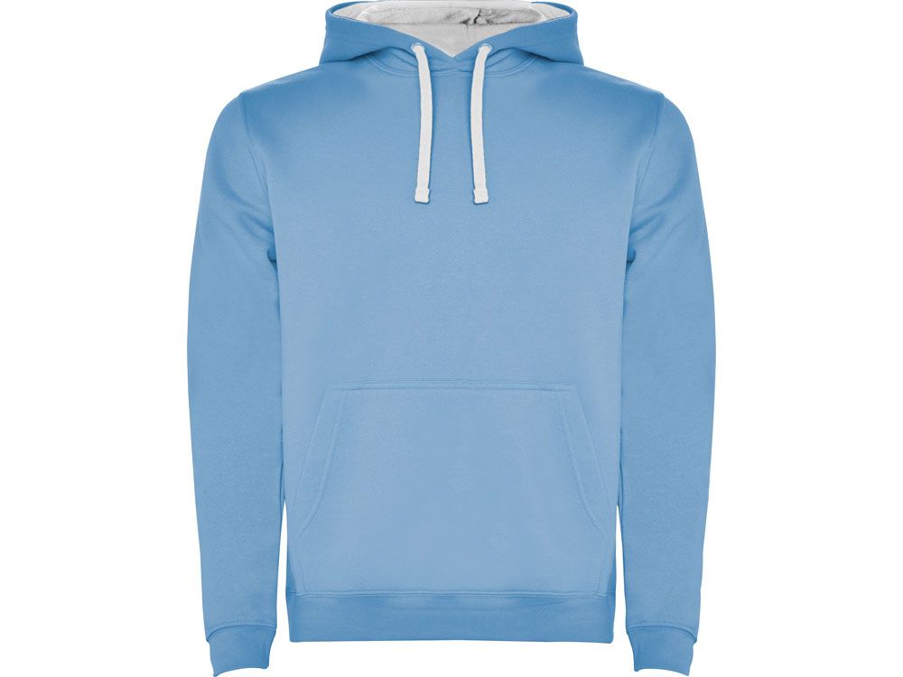 Худи с капюшоном и шнурками. Отделка горловины спинки внутри тесьмой, Риб 1х1 по низу изделия и манжетам. Карман кенгуру.