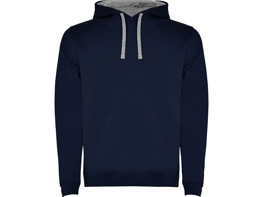 Худи с капюшоном и шнурками. Отделка горловины спинки внутри тесьмой, Риб 1х1 по низу изделия и манжетам. Карман кенгуру.