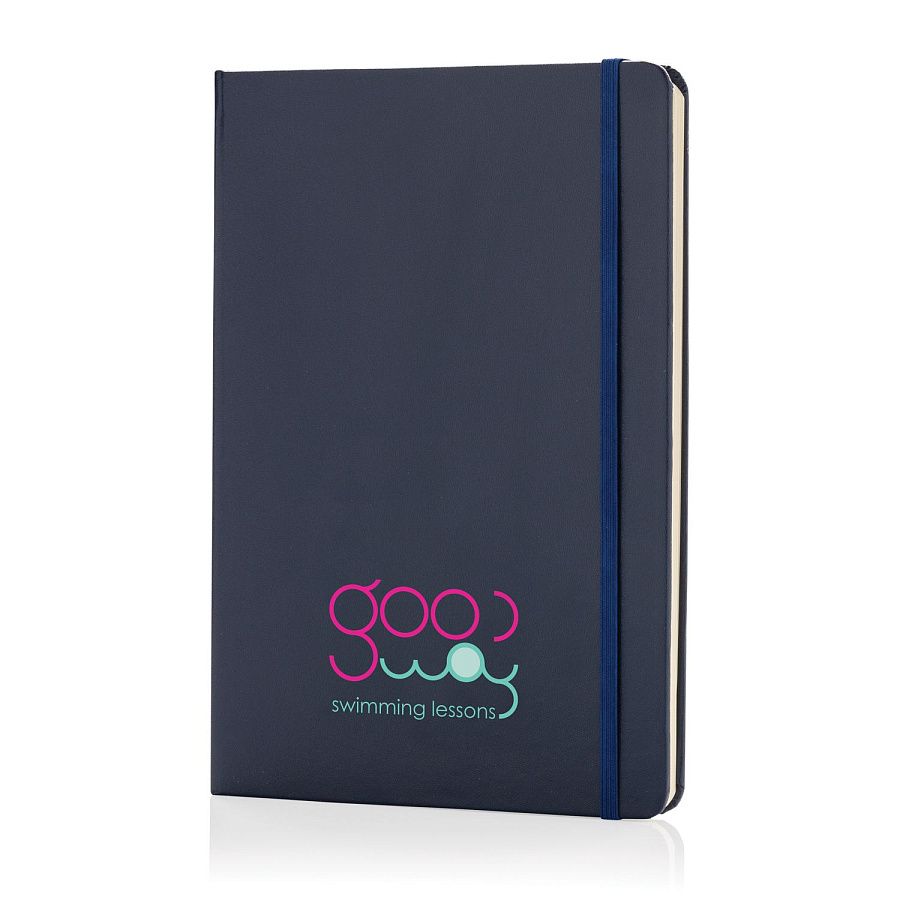 Блокнот для записей Basic в твердой обложке формата А5 на резинке с ляссе. 72 страницы, линованная бумага кремового цвета, плотностью 70 г/м2.