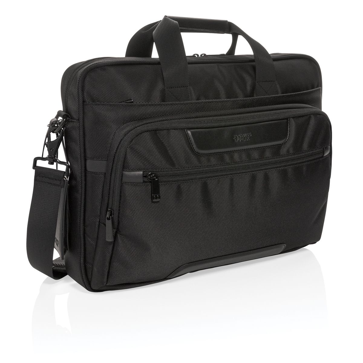 Сделайте свою поездку на работу проще с этой сумкой для ноутбука. Сумка изготовлена из прочного полиэстера 1680D с отделочными деталями из качественного PU. Сумка для ноутбука диагональю 15.6” от бренда Swiss Peak дополнена удобными отделениями для планшета, прочих мобильных гаджетов и мелочей, которые всегда должны быть под рукой. Подключите к специальному кабелю внутри свое зарядное устройство и вы сможете, используя USB-порт на сумке, заряжать гаджеты на ходу. Также в ней предусмотрен специальный карман с RFID-защитой, петли для ручек и съемная багажная бирка.