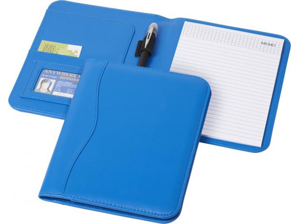 Папка с держателем для ручки, карманами для документов и блокнотом А5 с 20 страницами линованной бумаги. Ручка и принадлежности не включены.
