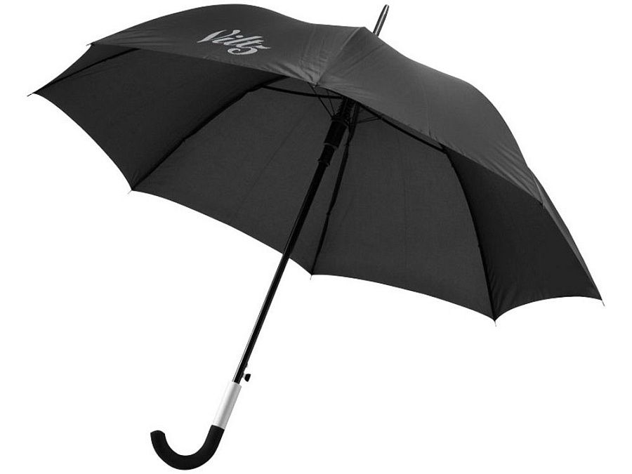 Автоматический зонт Arch 23". Эксклюзивный автоматический зонт. Металлическая трость и спицы. Специальная ручка, позволяющая вешать зонт на стол. Прорезиненная изогнутая ручка с алюминиевыми деталями. Чехол под цвет зонта. Эпонж полиэстер.