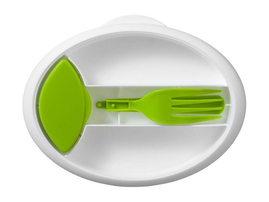 Ланч-бокс Maalbox изготовлен из пищевого пластика. Имеет удобный отдел для приправ и складную вилку в комплекте. Плотно закрывается крышкой - можно не переживать за содержимое. Контейнер подходит для использования в СВЧ-печи.