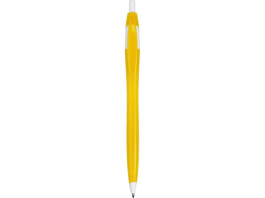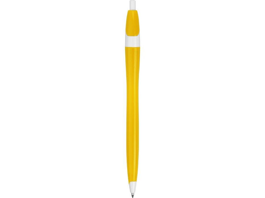 Простая, но стильная пластиковая ручка с цветным корпусом и белыми вставками на носике, кнопке и под клипом. Белые вставки делают ручку более заметной, не отвлекая от рекламной информации на ее корпусе.