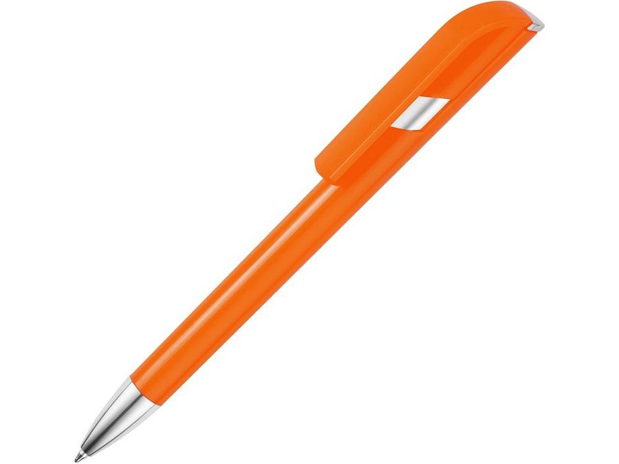 Пластиковая ручка с цветным корпусом и серебристым носиком привлечет внимание своим необычным дизайном: при нажатии на кнопку двигается только часть клипа, а вторая – остается на месте. Из шести расцветок можно выбрать ту, что наилучшим образом подойдет к вашим фирменным цветам.