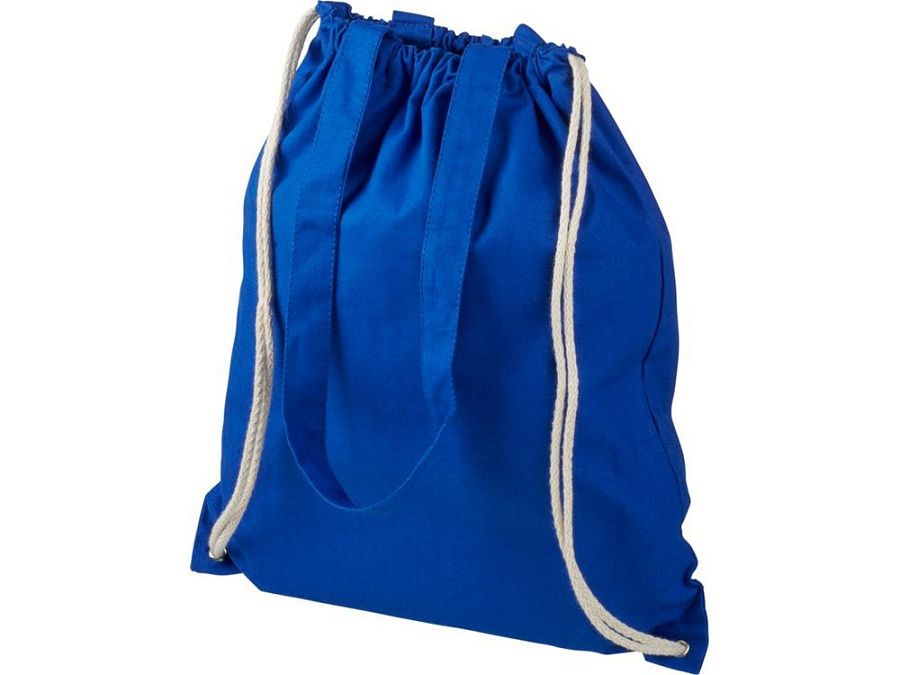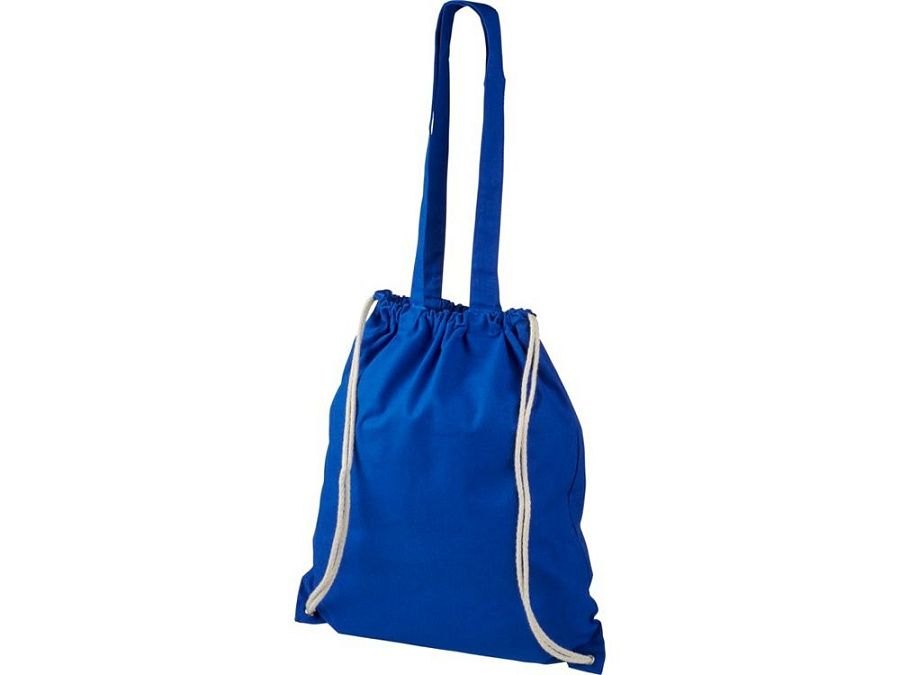 Многофункциональный хлопчатобумажный мешок с длинными ручками и затягивающим шнурком, который можно носить в качестве сумки для покупок или рюкзака. Большой основной отсек, закрывающийся затяжкой шнурка. Имеет две выпадающие ручки длиной 31 см. Вместимость: 16 л, выдерживает до 5 кг веса. Хлопок, 240 g/m2.