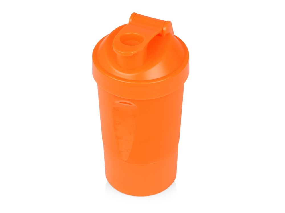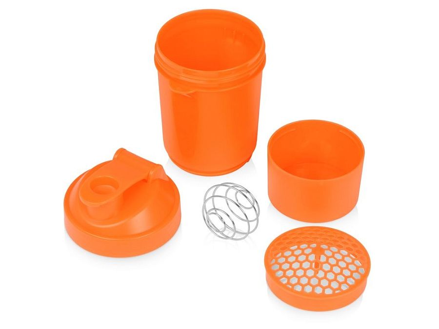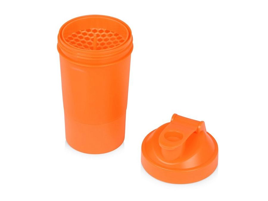 Шейкер для спортивного питания - это один из необходимых аксессуаров для спортсменов и людей, ведущих активный образ жизни. В нем можно приготовить протеиновый коктейль или фруктовый напиток. Шейкер классической формы, он удобно лежит в руке, к донышку прикручивается емкость для смешивания (таблетница), в которой можно хранить спортивные добавки: протеиновый порошок, витамины и другие концентраты. Внутри колбы имеется пластиковая сетка, чтобы процеживать спортивный напиток, а также металлический размешиватель, который растворяет порошок в напитке без комочков. Объем - 400мл. Шейкер изготовлен из пищевого пластика, он герметичен и легко моется.