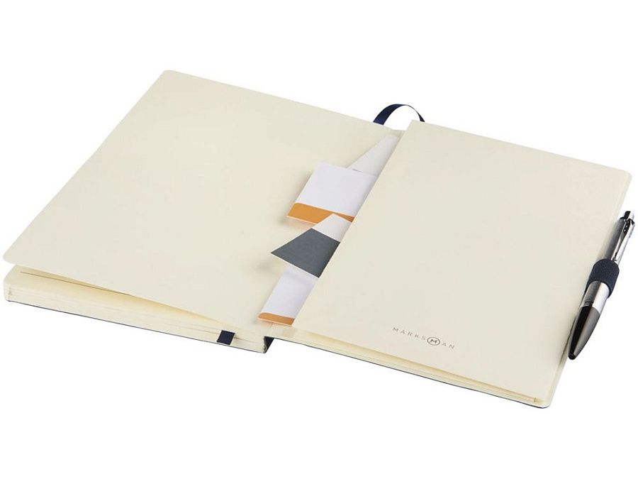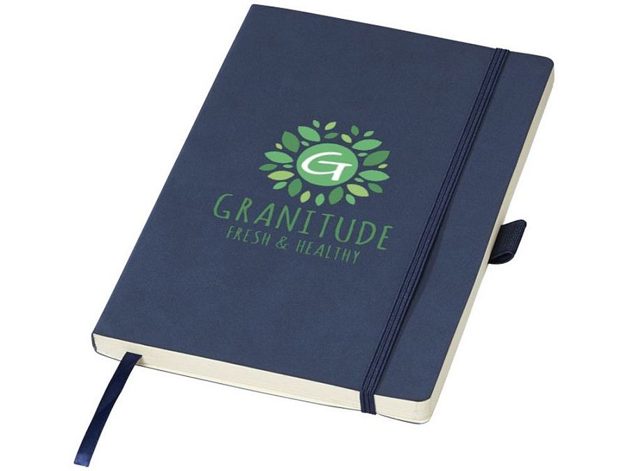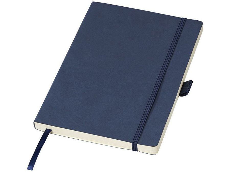 Блокнот Revello. Мягкий на ощупь, гибкий блокнот (размер А5 для ориентации) со встроенной эластичной застежкой, закладкой, петелькой для ручки и кармашка для документов на внутреннем форзаце сзади. 80 листов кремовой линованной бумаги (80г/м2). Упакован в черную коробку-рукав. Кожа ПУ.