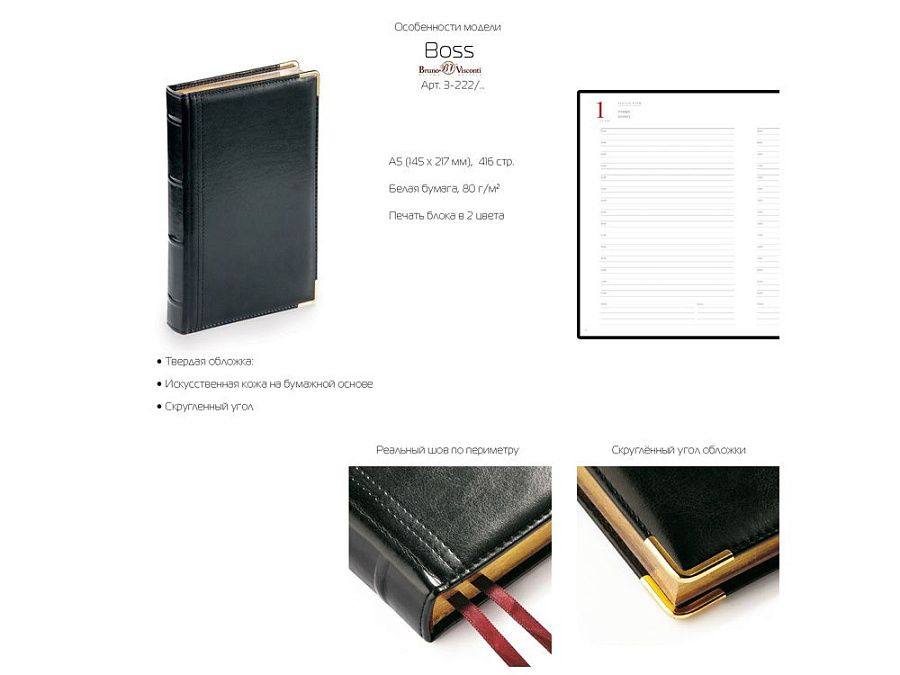 Полудатированный ежедневник «Boss» от бренда Bruno Visconti - это качественный корпоративный подарок по выгодной цене, произведенный специально под персонализацию. Представлен в универсальном формате А5 и состоит из 416 страниц.
