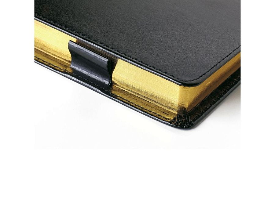 Их закругленные уголки совпадают с формой обложки, обрез золотого цвета. Используется бумага высшего качества с плотностью 70 грамм.