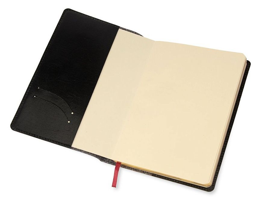 Обложка с прострочкой по периметру выполнена из натуральной рециклированной кожи и является съемной.