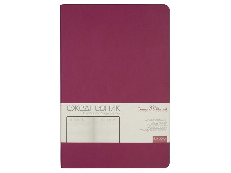 Недатированный ежедневник «Megapolis Flex» от бренда Bruno Visconti - это качественный корпоративный подарок по выгодной цене, произведенный специально под персонализацию. Представлен в универсальном формате А5 и состоит из 272 страниц. Элегантная закругленная flex обложка из гладкого кожзама имеет гибкую конструкцию и приятна на ощупь. А интегральный переплет позволяет сэкономить место в деловой сумке или портфеле – ежедневник можно просто свернуть в трубку или согнуть пополам.