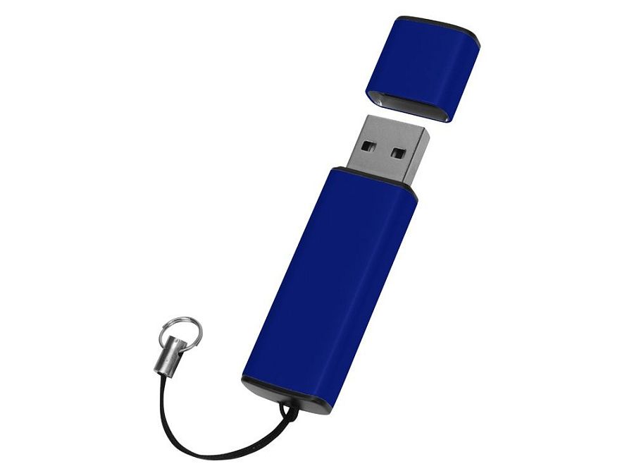 Металлическая флешка в окрашенном корпусе с колпачком. Имеет крепление для переноски.