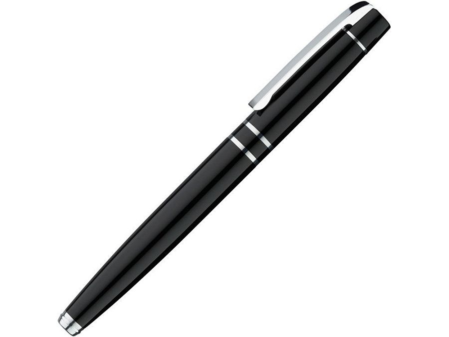 Металлическая ручка-роллер с пружинным клипом и нескользящей прорезиненной зоной захвата черного цвета. Фурнитура с глянцевой хромированной отделкой.