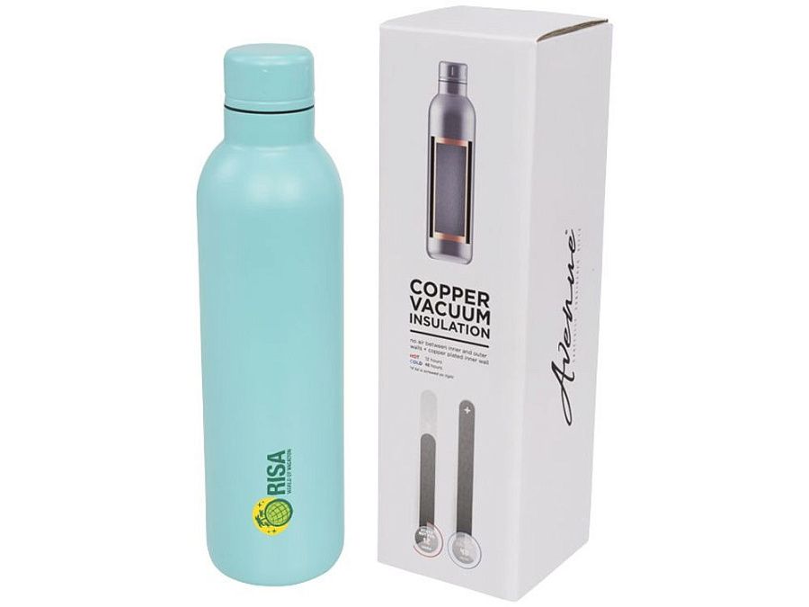 Спортивная бутылка Thor с вакуумной изоляцией объемом 510 мл. Прочная бутылка с двойными стенками из нержавеющей стали и вакуумной медной изоляцией сохраняет напитки холодными в течение 48 часов и горячими в течение не менее 12 часов. Конструкция бутылки предотвращает образование конденсата на внешней стороне. Модное, прочное порошковое покрытие. Герметичная завинчивающаяся крышка из нержавеющей стали. Объем – 510 мл. Предлагается в подарочной коробке Avenue. Нержавеющая сталь.