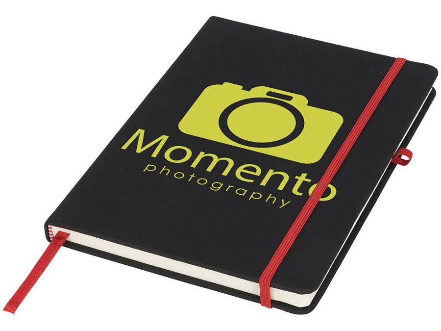 Блокнот Noir среднего размера. Блокнот Noir с мягкой на ощупь черной ПУ обложкой. В каждом блокноте есть цветная застежка, держатель для ручки и лента-закладка. Блокнот содержит 96 листов линованной бумаги (70 г/м²) кремового цвета. ПУ.