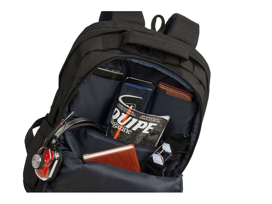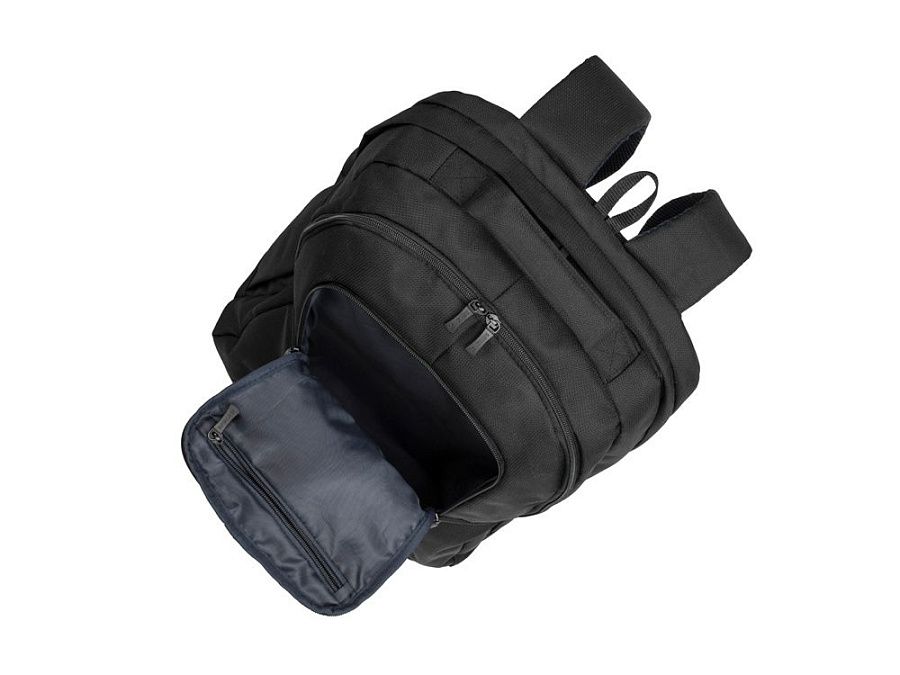 • Основное отделение для ноутбука с вертикальной загрузкой, имеет мягкие стенки и ремень для надежной фиксации ноутбука до 17".