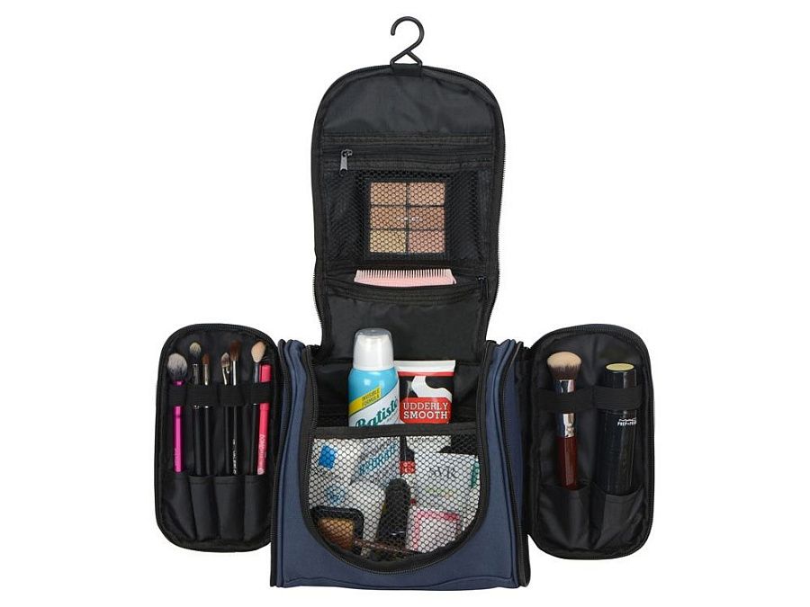 • Оснащен внутренними карманами и отделениями, позволяющими организованно распределить мелкие аксессуары, включая зубную пасту и щетку, бритвенный станок, расческу, лекарства и другие, необходимые в дороге мелочи