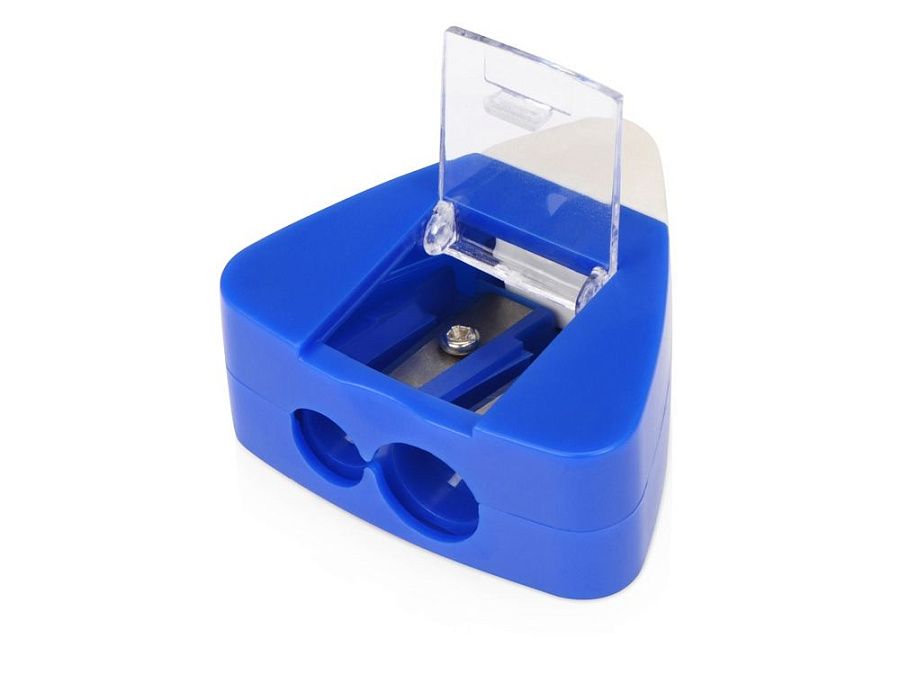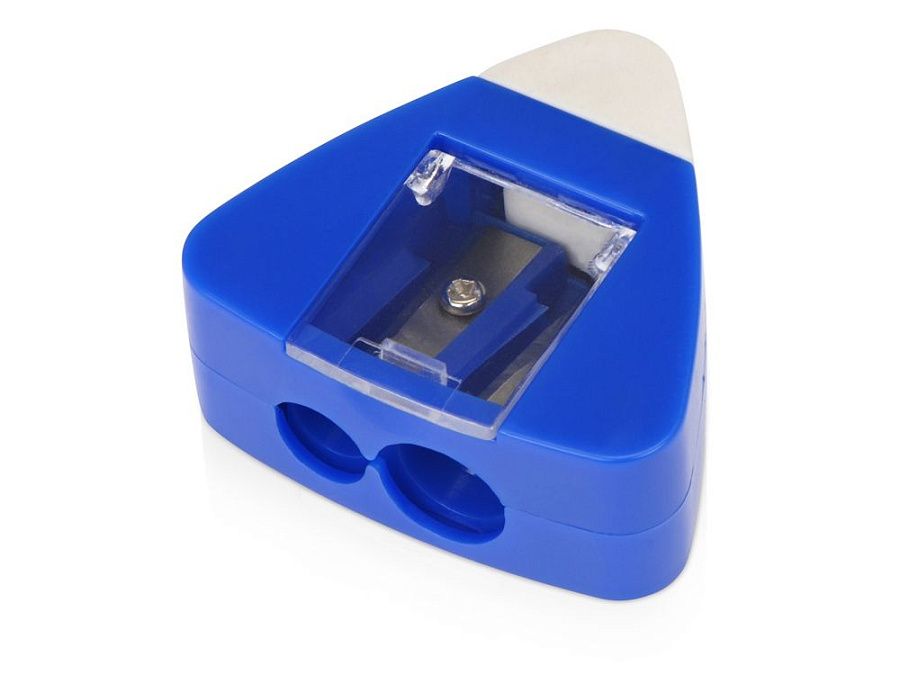 Точилка для карандашей разного диаметра и ластик в одном корпусе. Большое поле для нанесения логотипа.