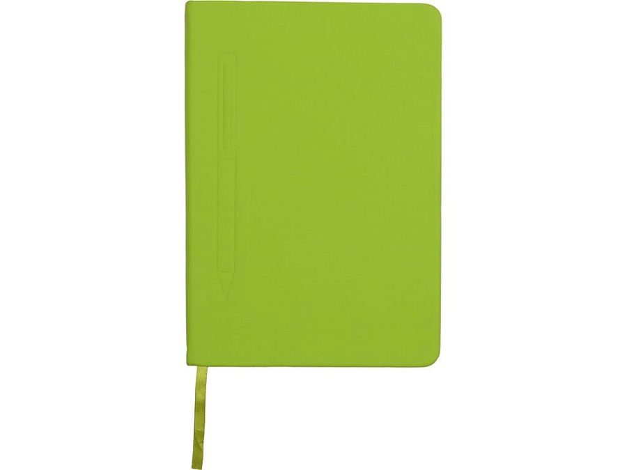 Блокнот формата А5 в твердой обложке со скруглёнными углами и блоком в линейку на 80 листов. Благодаря скрытой магнитной ленте на блокноте можно легко и надежно закрепить металлическую ручку. Зона с магнитом обозначена тиснением в форме ручки.