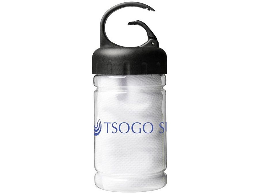 Охлаждающее полотенце Remy в ПЭТ-контейнере. Быстро впитывающее, быстро сохнущее и стираемое охлаждающее полотенце сохраняет прохладу во время тренировок или любых других занятий на свежем воздухе. Поставляется в ПЭТ-контейнере с ручкой и встроенным карабином для удобной переноски. Доступно в 5 ярких цветах. На контейнере изображен большой логотип, он также может быть и на самом охлаждающем полотенце. Размер: 30 x 80 см. PET. 0,096.