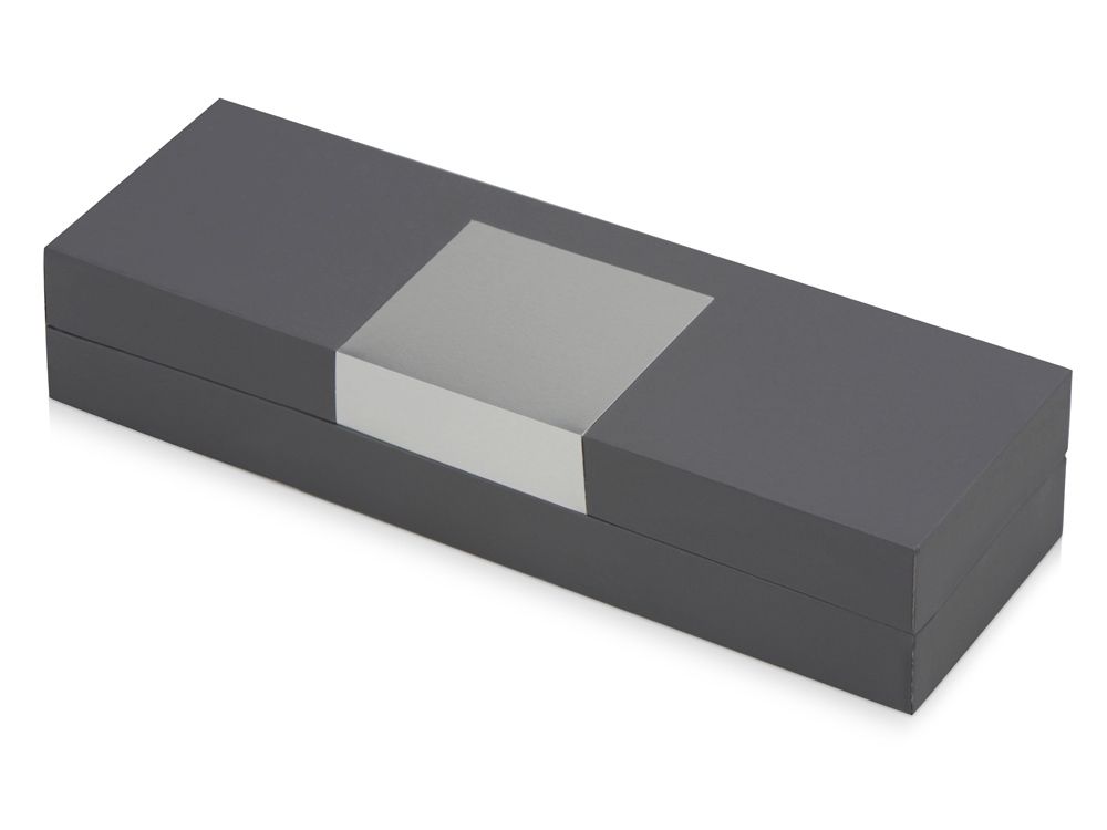 Футляр для ручки изготовлен из прочного картона с матовым покрытием, имитирующим кожу. Декоративная серебристая вставка придаёт футляру премиальный вид. Внутренняя часть отделана велюром, на котором ручка фиксируется при помощи атласной ленты.