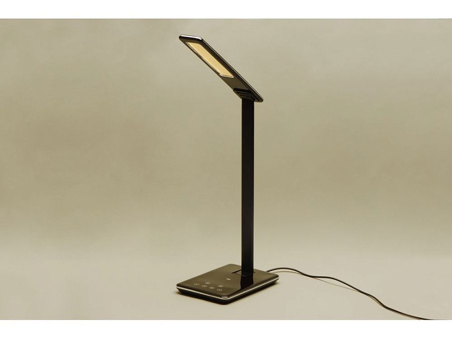 «Умная» функциональная настольная лампа с 3 режимами освещения: теплый желтый свет, нейтральный свет и холодный свет. Равномерно мягкий свет приятен и безопасен для глаз (отсутствует мерцание). На панели основания лампы можно также регулировать яркость и ставить таймер отключения (1 или 2 часа). В лампе предусмотрена беспроводная зарядка Qi-совместимы устройств, чтобы зарядить смартфон – просто разместите его в центре основания, и зарядка автоматически начнется. Выходной порт USB для проводной зарядки устройств. Благодаря продуманной конструкции лампа может принимать практически любые положения.