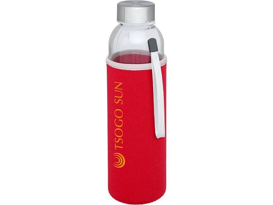 Стеклянная бутылка с одинарными стенками и съемной крышкой. На крышке есть ремешок для легкой переноски, кроме того имеется чехол из неопрена. Рекомендуется использовать для холодных напитков. Не замораживать, не разогревать в микроволновой печи. Объем 500 мл. Уложена в подарочную коробку.