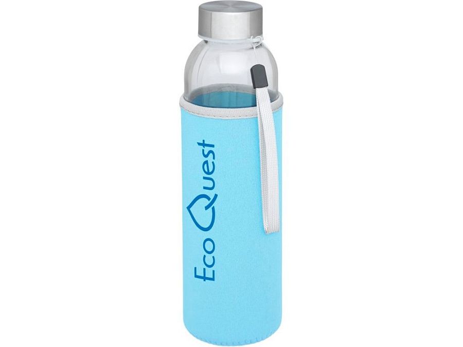 Стеклянная бутылка с одинарными стенками и съемной крышкой. На крышке есть ремешок для легкой переноски, кроме того имеется чехол из неопрена. Рекомендуется использовать для холодных напитков. Не замораживать, не разогревать в микроволновой печи. Объем 500 мл. Уложена в подарочную коробку.