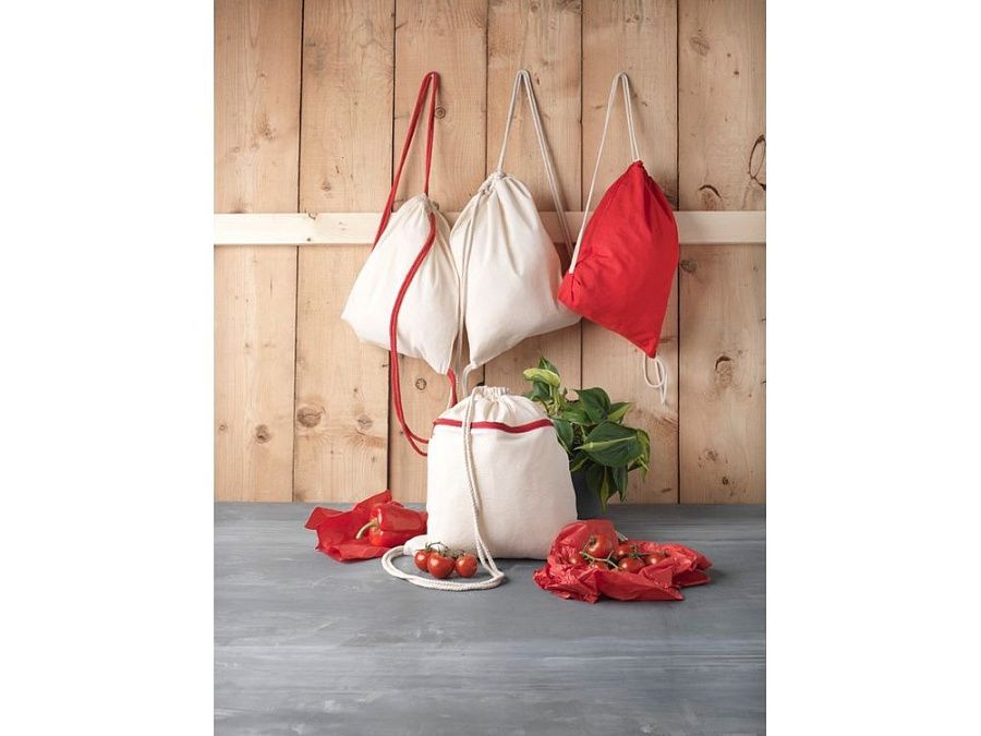 Рюкзак со шнурком и главным отделением на цветной шнуровке. Прочность до 5 кг.