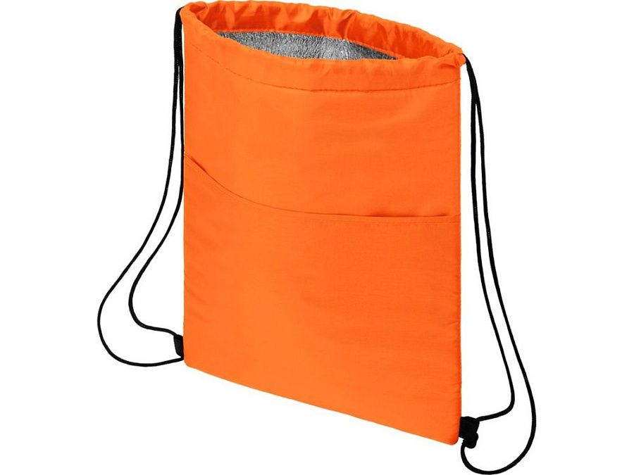 Сумка-холодильник затягивается на шнурок черного цвета. С открытым передним карманом. Вмещает 12 банок. Прочность до 5 кг.
