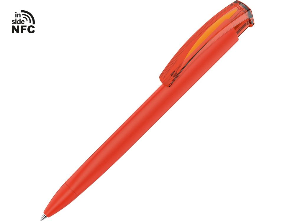 Пластиковая шариковая ручка «Trinity K transparent Gum» soft-touch» с чипом передачи информации NFC обеспечивает быстрый доступ к рекламной информации. Для передачи данных посредством технологии NFC смартфон или планшет, которые поддерживают данную технологию, необходимо поднести к запрограммированной на ручке метке NFC (метка расположена под логотипом NFC). После этого на смартфоне или планшете откроется запрограммированная ссылка на сайт, ролик или начнется загрузка другой информации (заранее загруженной в сеть интернет). Таким образом метка работает как код, при чтении которого смартфон или планшет открывает определенную программу, активирует функцию или ссылку. Можно запрограммировать на метке NFC адрес сайта, каталог и другие рекламные материалы и раздавать вместо визиток. Метка NFC активирует одно действие на смартфоне или планшете.